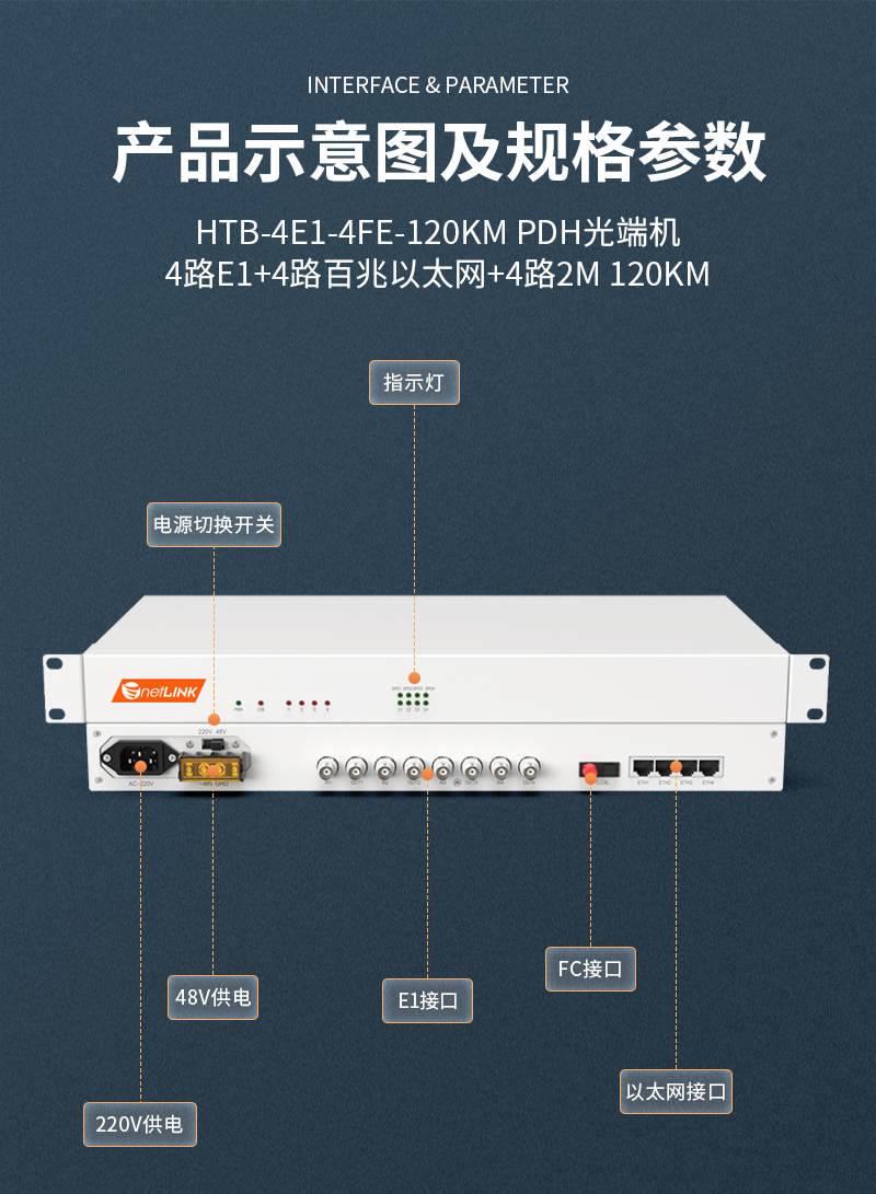 PDH光端机 4路E1+4路百兆以太网 120KM